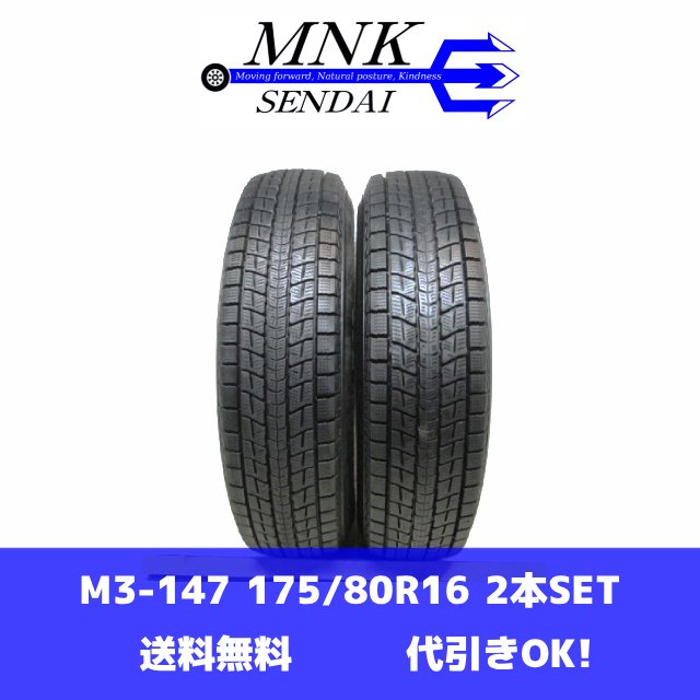 > M3-147(送料無料/代引きOK)ランクE 中古 バリ溝 175/80R16 DUNLOP WINTERMAXX SJ8 2017年 8~8.5分山 スタッドレス 2本SET