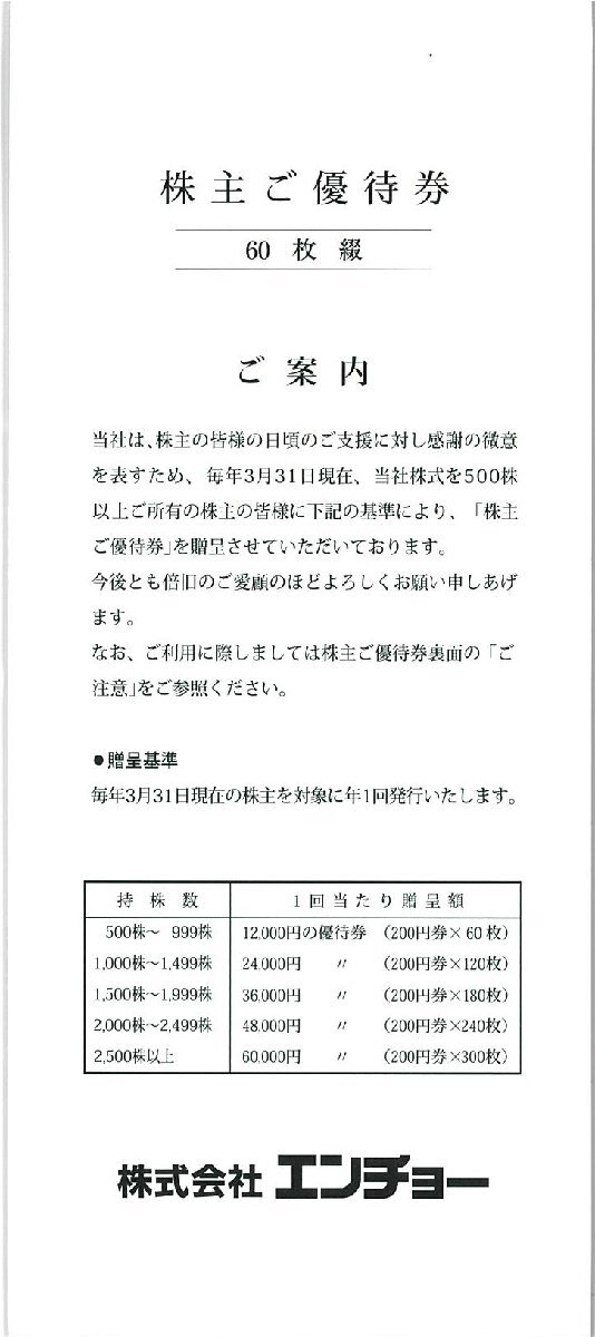 > 甲南☆エンチョー☆12,000円分(200円×60枚綴り)☆優待券冊子☆2026.6.30【管理3937】