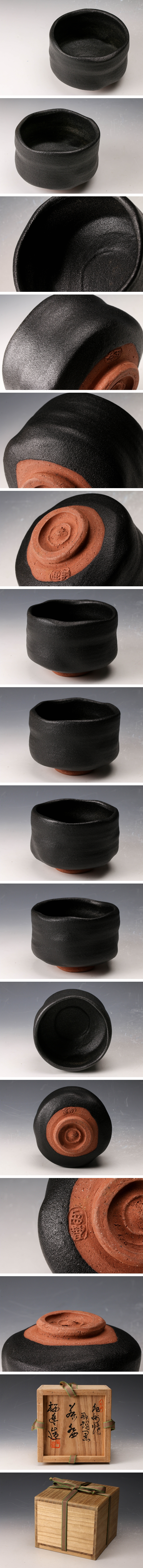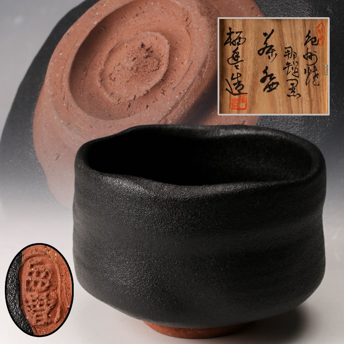 【佳香】寒川栖豊 紀州焼那智黒茶碗 共箱 茶道具 本物保証