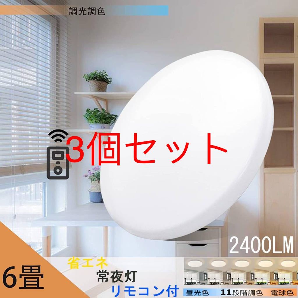 - LEDシーリングライト天井照明 6畳 20w 調光調色 2500LM リモコン付き 電球色 昼光色 常夜灯3個セット組