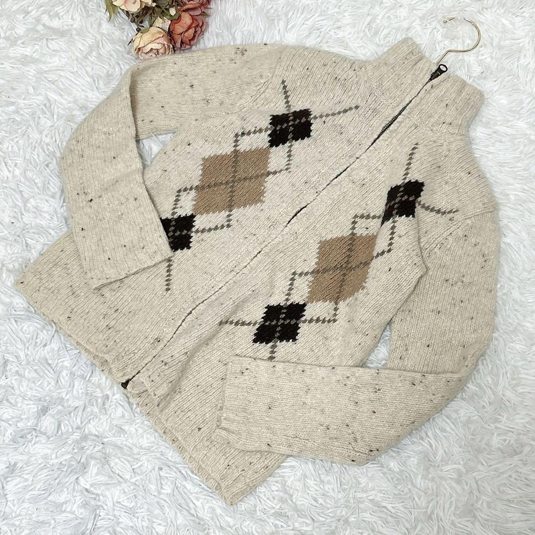 - ★エディーバウアー★ウールカーディガン【XS】アーガイル カジュアル ベージュ