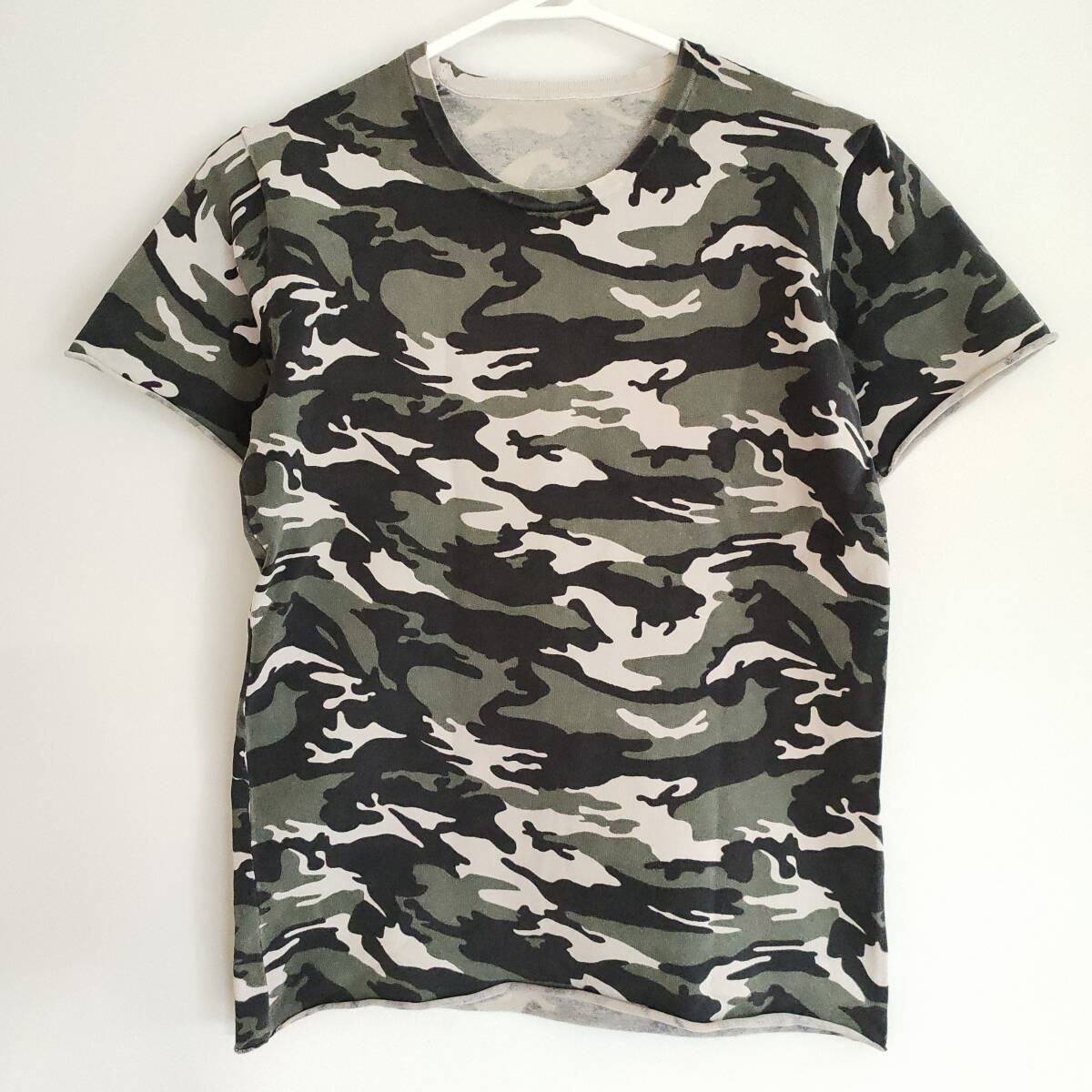 - 美品 アタックザマインドセブン Tシャツ 半袖 ミリタリー 迷彩 サイズ1 メンズ S相当 attack the mind7 Vネック 総柄