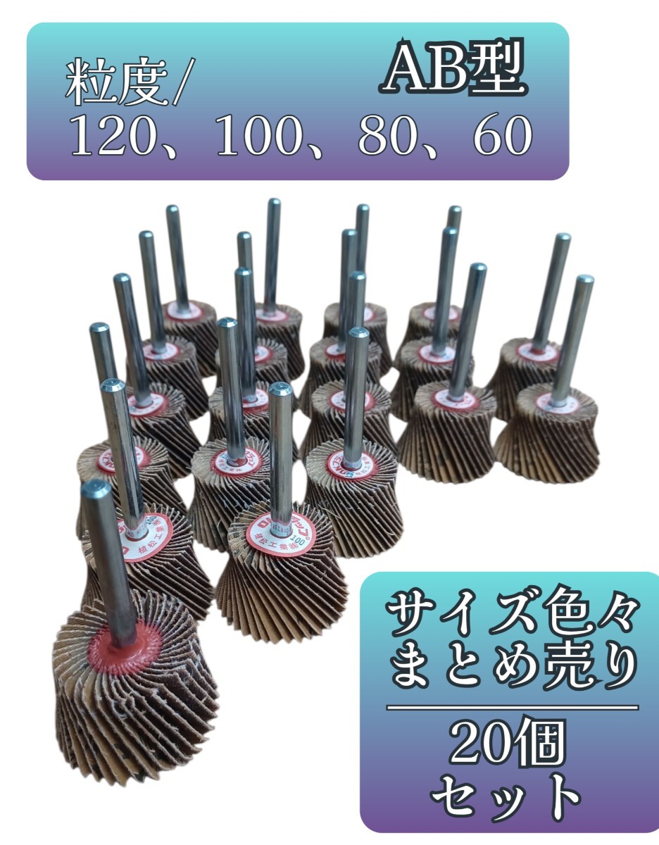 - 岩⑨)軸付きフラップホイール 20個セット 粒度120 100 80 60 フラップホイール OKフラップ グラインダー 研磨 研削 工具 251002(N-1-3