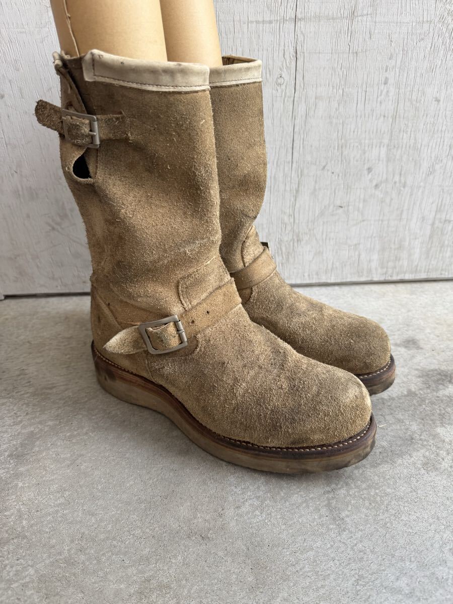 > ★ Chippewa チペア エンジニアブーツ スエード ベージュ Vibram ビムラルソール ローラーバックル 8E 26.0 USED ウエスコ WESCO