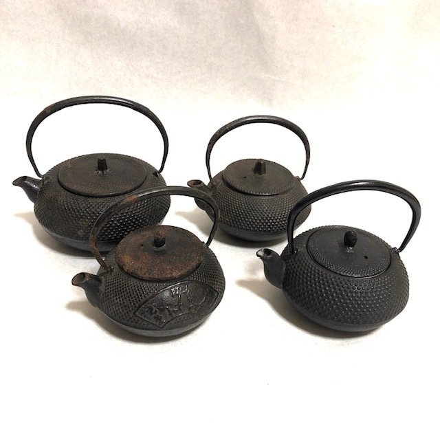 - ◆ヴィンテージ◆ 南部鉄器 鉄瓶 急須 4点セット ほうろう加工 鋳物 お茶 お祝い品 ギフト 鉄分補給 レトロ アンティーク 工芸品