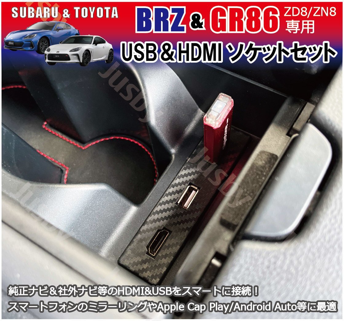 - 新型BRZ GR86 (ZD8/ZN8) USB HDMIソケットSET 純正ナビ&社外ナビ 対応!カーナビとのミラーリング等をスマートに USBHDMIポートケーブル
