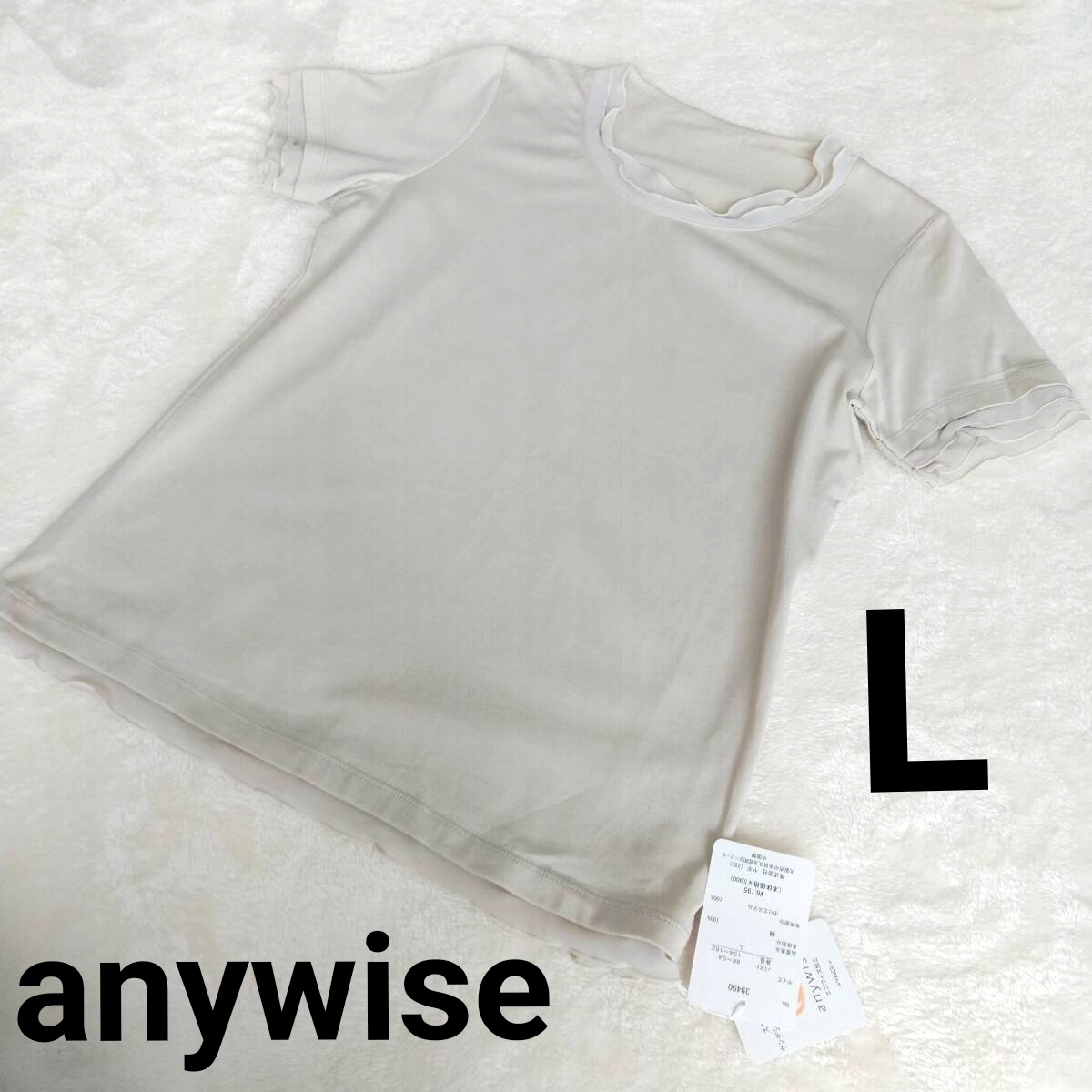 - △ QVC エニワイズ anywise 半袖 カットソー シフォンフリルネック ベージュ系 L