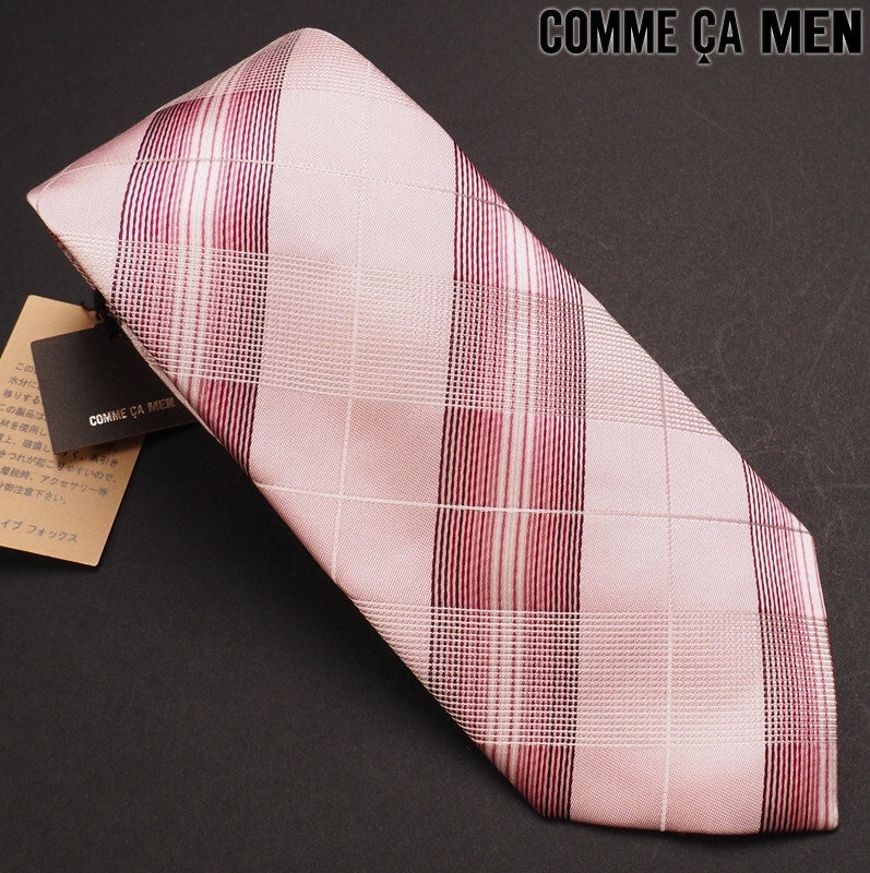 - 新品定価1.1万円 COMME CA MEN コムサメン シルク100% シャープチェックネクタイ ピンク(11) 66NF02