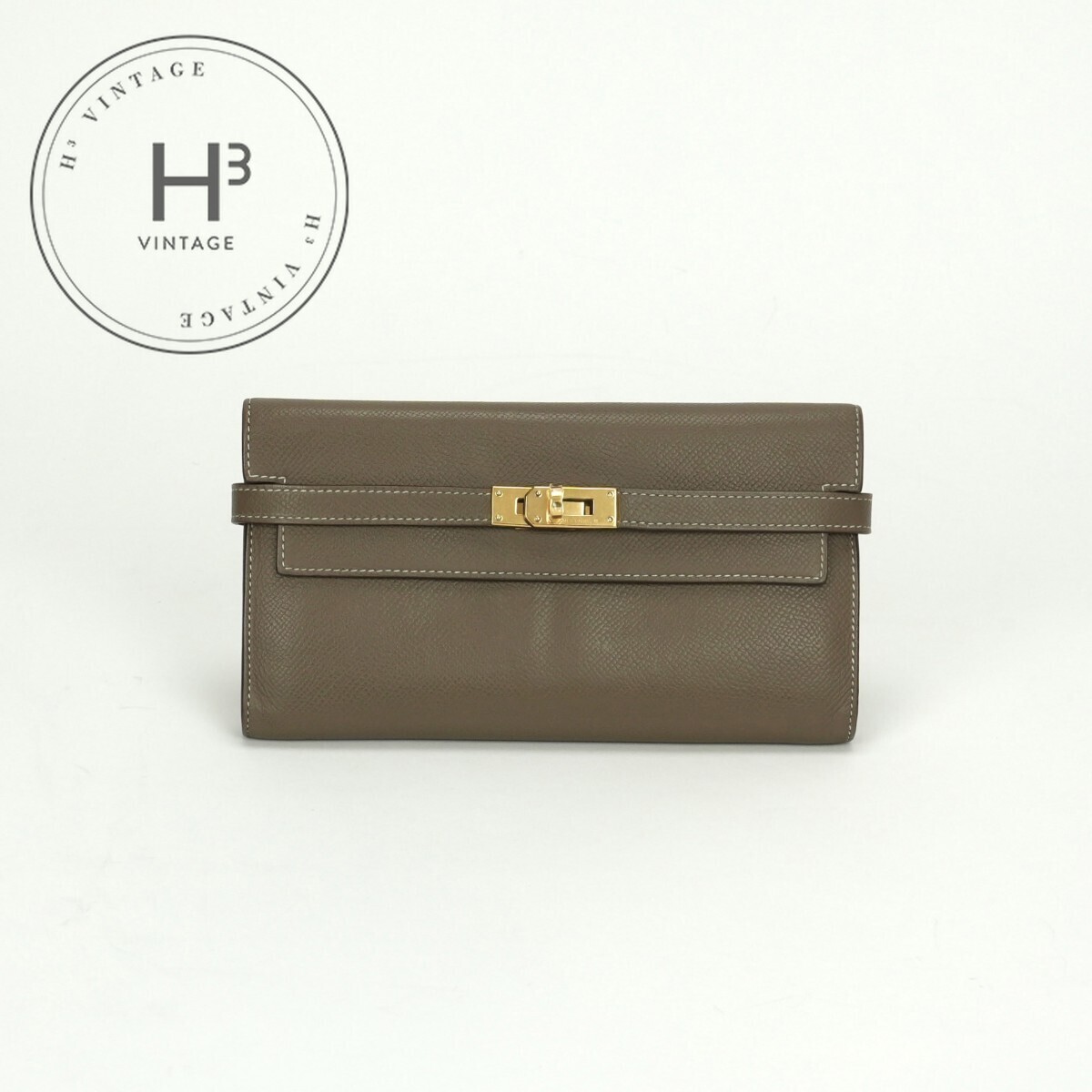 - エルメス HERMES ケリーウォレット ケリーウォレットロング 財布 長財布 ロングウォレット エプソン エトゥープ Etoupe