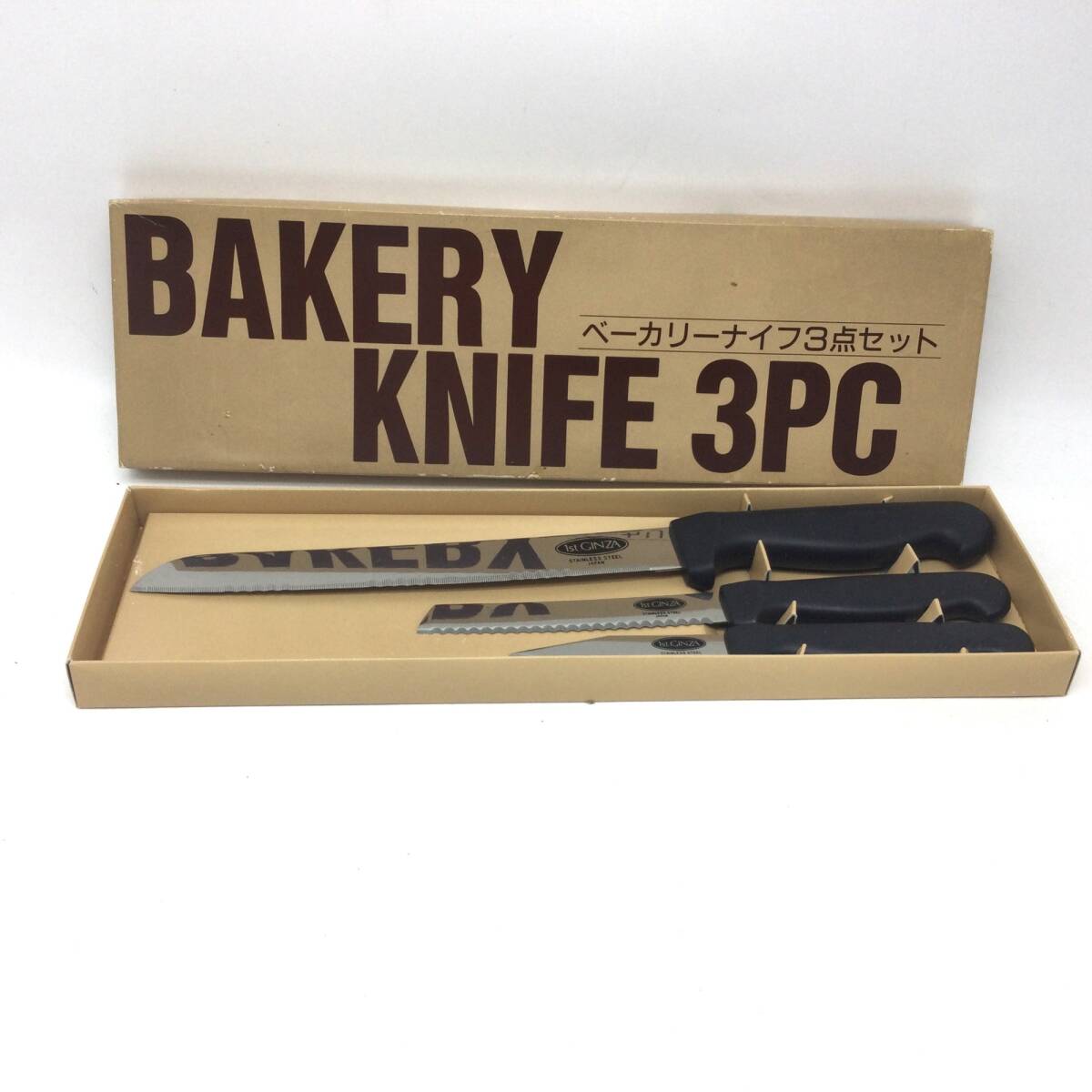 > 10029 【美品】ベーカリーナイフ 3点セット BAKERY KNIFE 1st.GINZA STAINLESS STEEL JAPAN 刃長約200mm/115mm/75mm パン切り 包丁