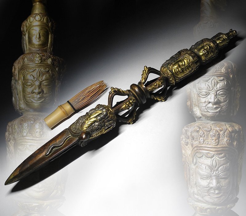 - 緑屋i■ 中国古玩 銅製 鍍金 鍍銀 独鈷杵 金剛杭 金剛蕨 プルパ キーラ チベット密教法具 唐物 時代物 仏教美術 i9/1001-8/3-2#80