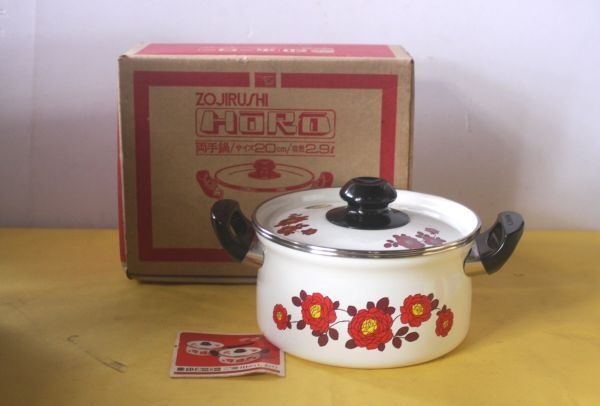 - 未使用品 レトロポップ 象印 ホーロー両手鍋 20㎝ 容量2.9 プランター 花柄/27N9.18-10