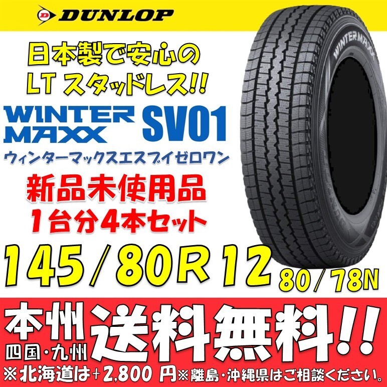 > 145/80R12 80/78N LT ダンロップ 日本製 ウィンターマックスSV01 2024年製 4本 送料無料 スタッドレスタイヤ 軽トラ 軽バン ライトトラック