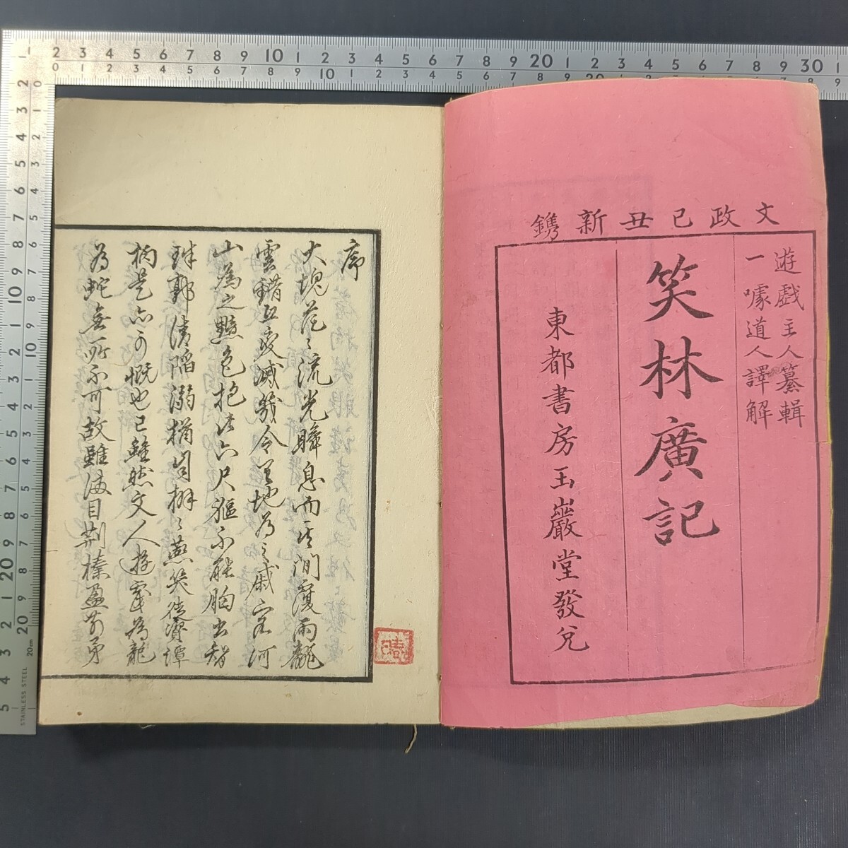 - a731)唐本 遊戯主人『笑林廣記』上巻 文政12(1829)年新 一道人/訳解 笑い話 漫談 和本