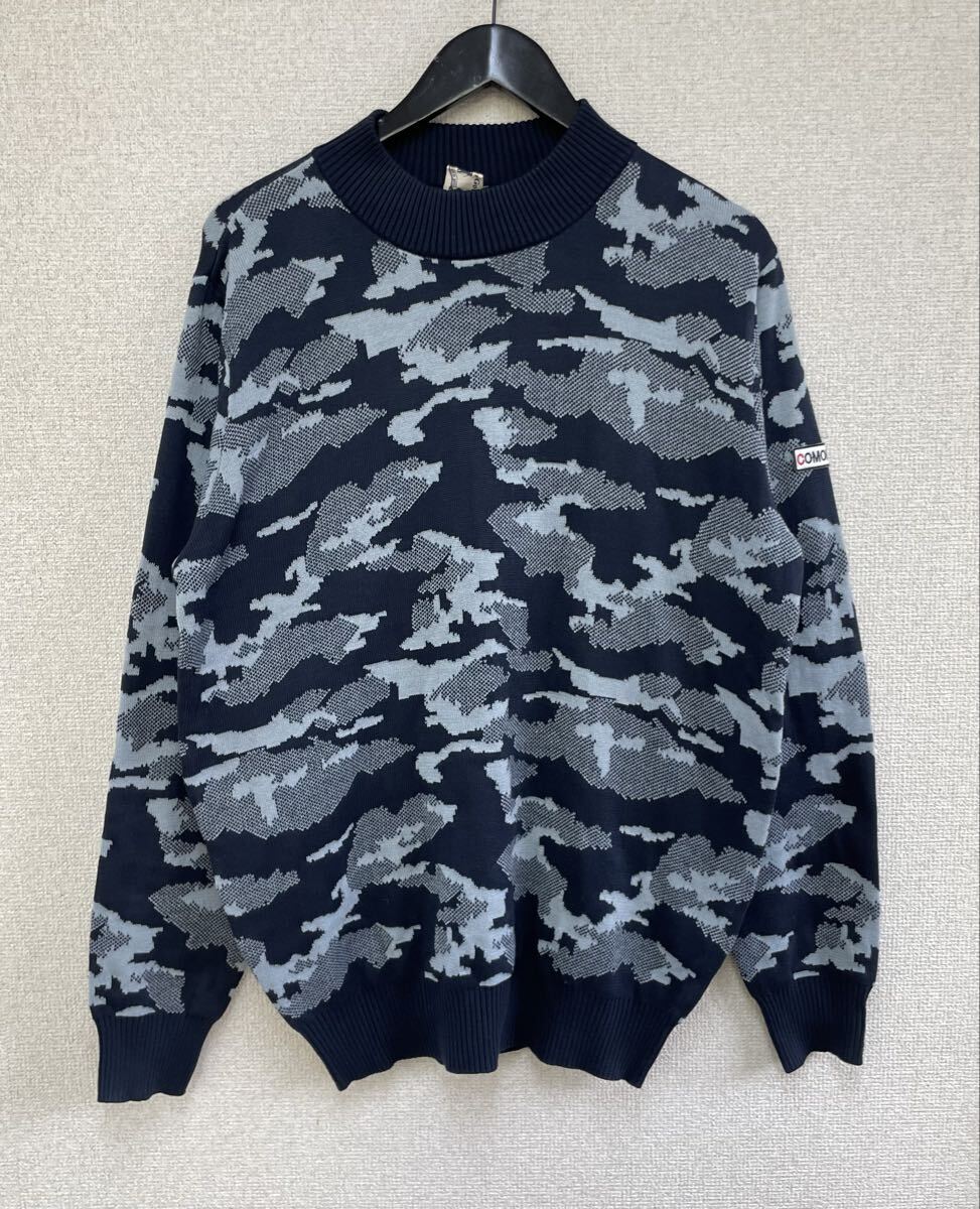 > 美品 COMON GOLF コモン ゴルフ 総柄 カモ柄 ハイネック ゴルフ ニット セーター ネイビー系 メンズ XXLサイズ 大きなサイズ