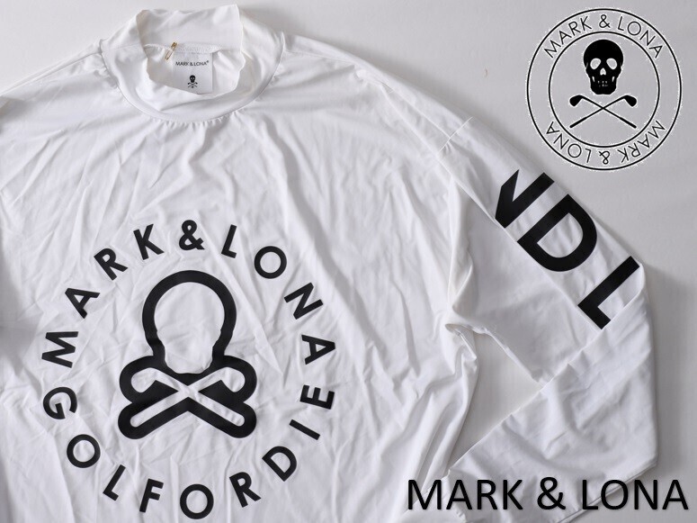 > ★正規★MARK&LONA マーク&ロナ★MENS Ever Long Sleeve Mock Neck Tee ロゴモックネックシャツ48【MLM-3C-AU01】ホワイト白【本物保証】