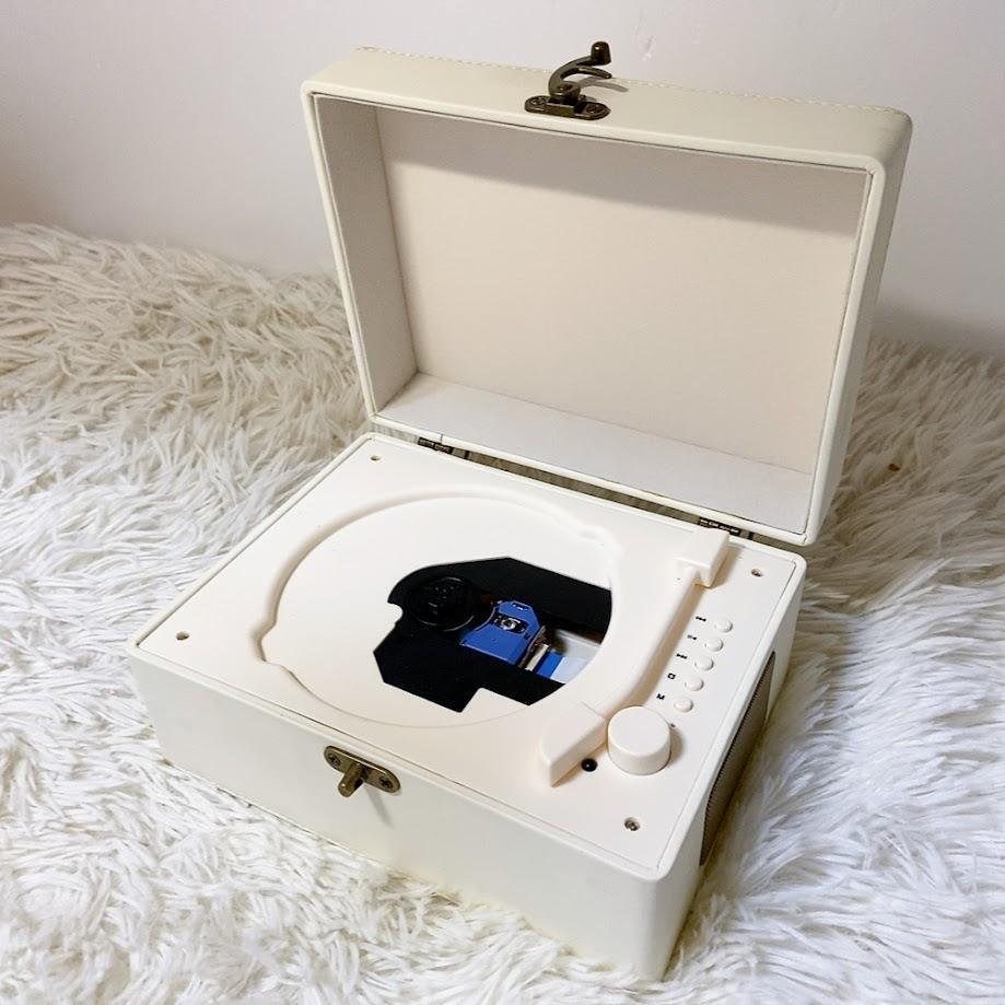 - ポータブルCDプレーヤー BLUETOOTH レトロ ボックス型 レザ―調