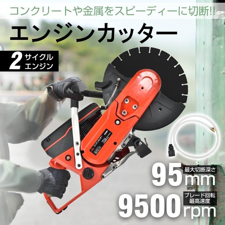 > エンジンカッター 電動 ハンドカッター パワーカッター 散水ホース ループハンドル 防振システム 4馬力 最大切断深さ95mm 乾式 湿式 sg069