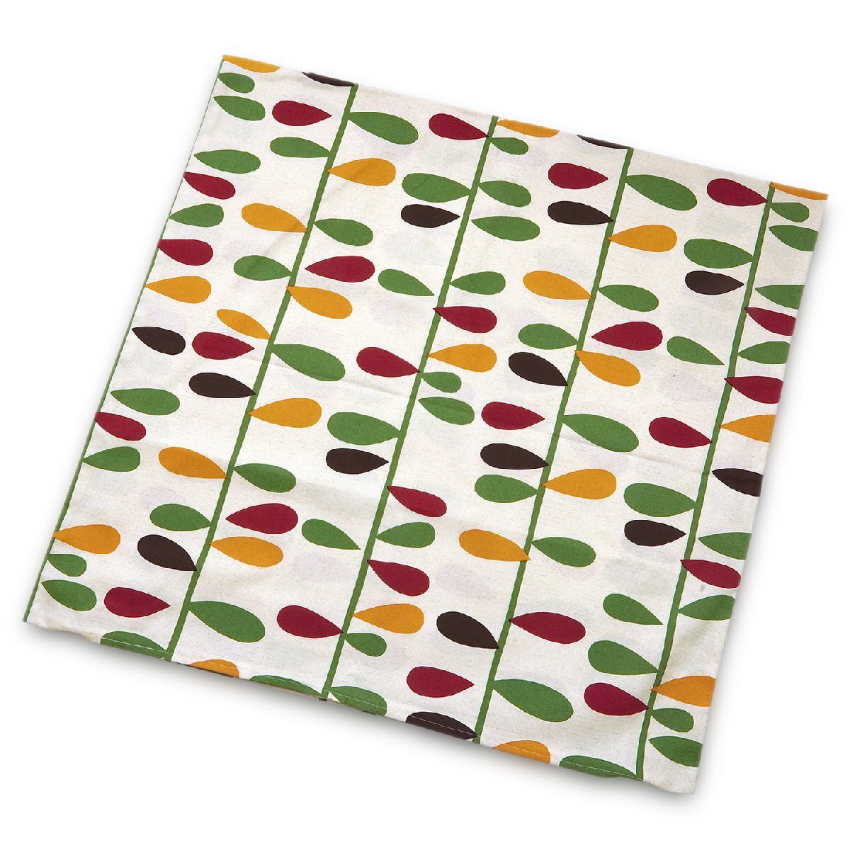 - クッションカバー 約70×70cm ピノ グリーン 綿100% 日本製 ボタニカル 植物 葉柄 リーフ柄 緑色 生成り