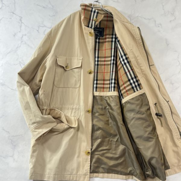 > 【L】 バーバリーズ ブルゾン ジャケット コート 襟裏ノバチェック ドローコード アウター 薄手 ベージュ系 メンズ Burberrys B1552