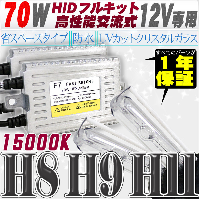 - 高性能 HIDキット 70W H11/H8 15000K 【交流式バラスト&クリスタルガラスバーナー】 12V用