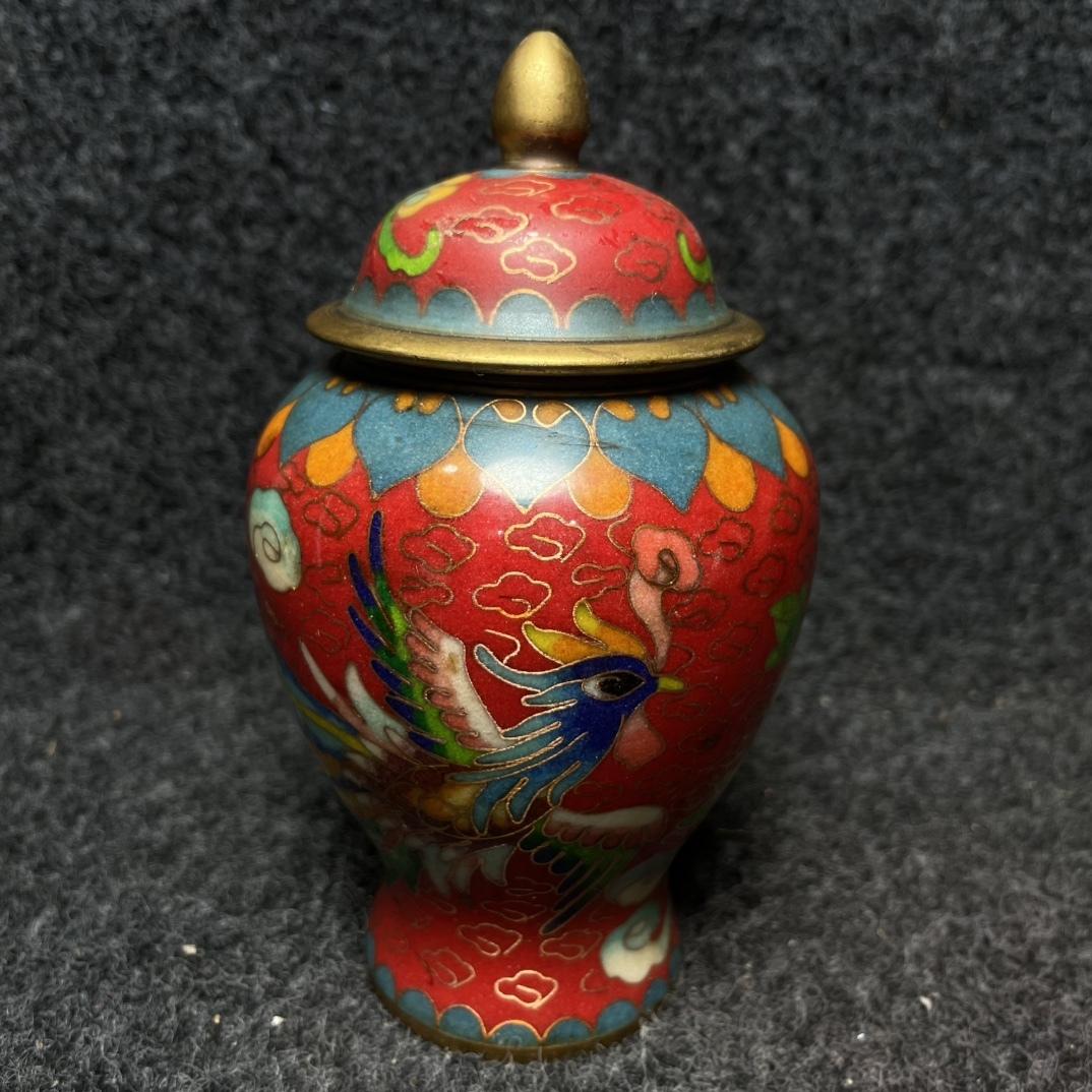 - 【超珍館蔵】 銅 景泰藍 琺瑯彩 龍鳳呈祥紋 將軍罐一對 盒付 置物 賞物 古賞物 古董品 古美術品 時代物 旧家蔵出 稀少珍蔵品