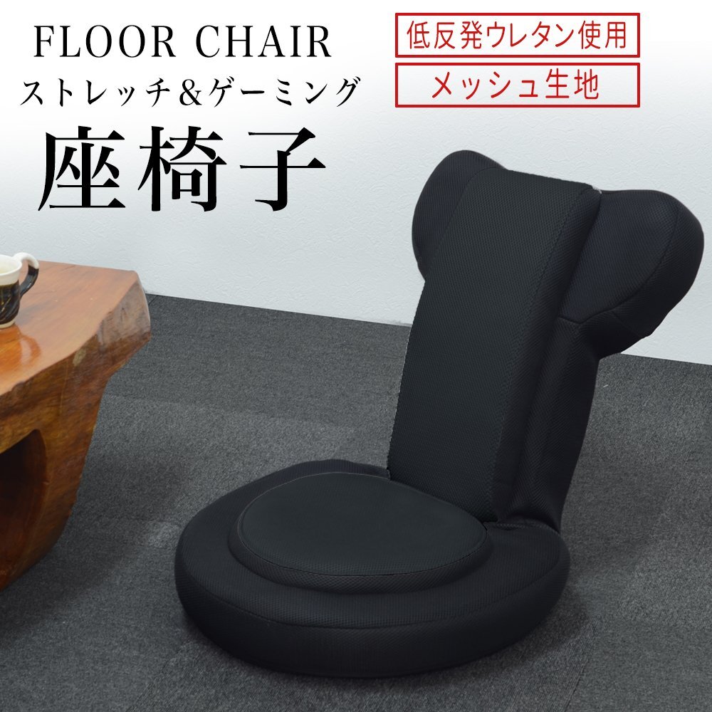- 座椅子 リクライニング 低反発 メッシュ ゲーミング座椅子 ブラック 姿勢矯正 ストレッチ ゲーム 快適