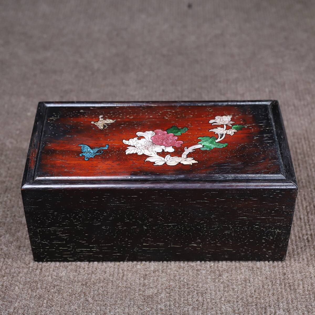 - ▽鴻▽ 紅花梨木製 細密彫 貝殼嵌 收納盒 置物 文房賞物 古賞物 古董品 時代物 稀少珍品 中国古玩 中国古美術