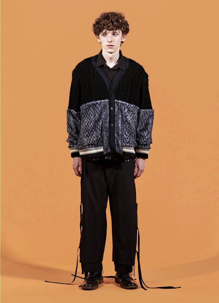> ☆二点落札で送料無料!M048 amok アモク 20AW 切替ニット フェイクファー カーディガン M メンズ ブラック×ネイビーブルー アウター