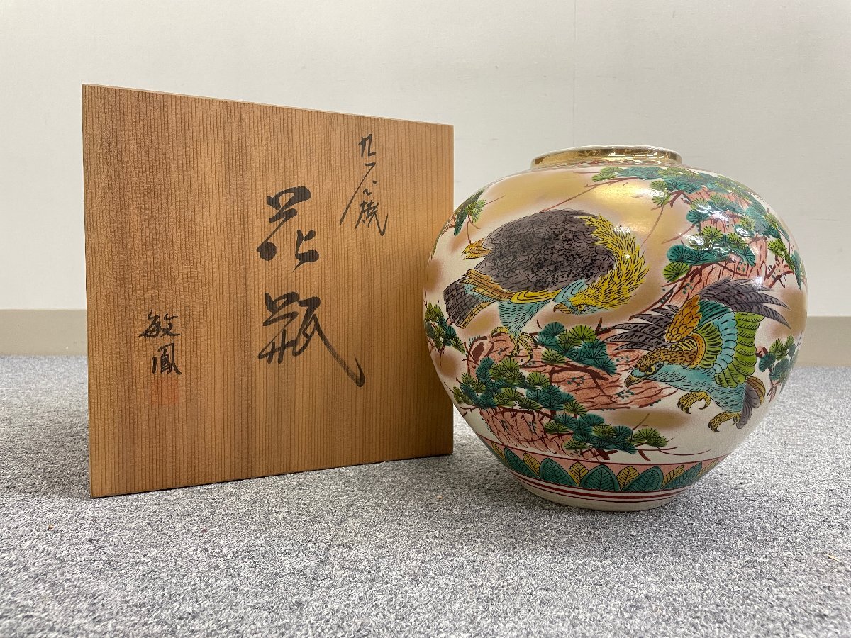 - ・九谷焼 花瓶 敏鳳 造 夫婦鷹 松 鳥 花器 花入 飾り壺 陶器 高さ26cm 伝統工芸 日本