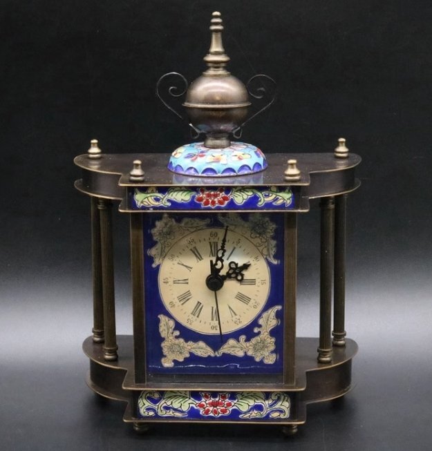 - 置き時計 西洋時計 トレロ 機械時計 美術品 景泰藍 新品未使用 ゼンマイ式 工芸品 zh243
