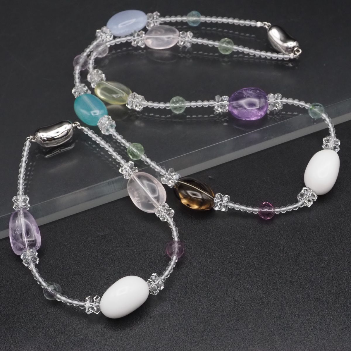 > G004 アメジスト ローズクォーツ 等 カラーストーン SILVER刻印 ネックレス ブレスレット セット デザイン シルバー 2月誕生石