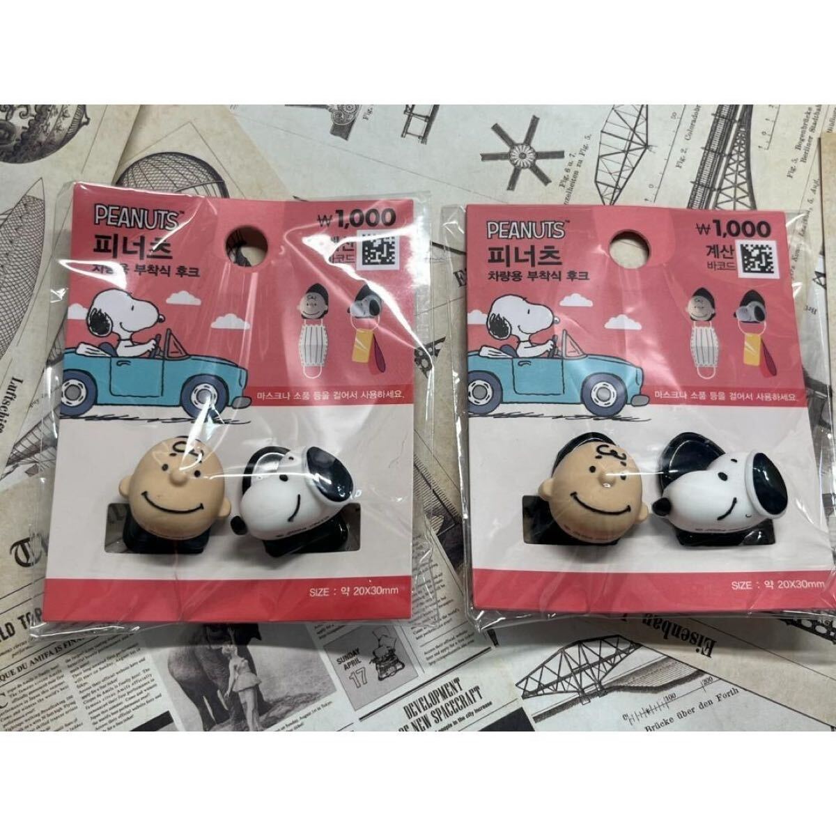 - 《2個セット》【日本未発売韓国限定】韓国ダイソー*スヌーピー*車用*ミニフック