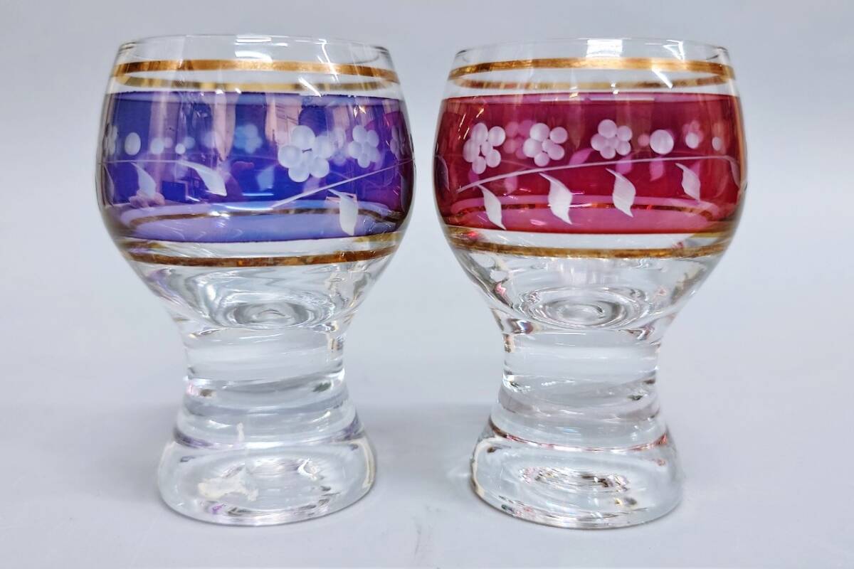 - ラスカ ボヘミア ペア グラス 2客 セット 盃 赤 青 ガラス工芸 ペアグラス 酒器グラス インテリア 工芸品 コレクション 工芸ガラス