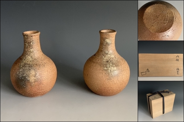 - 魯山人 灰釉 ? 信楽 徳利 一対 2本 北大路魯山人 魯 ロ サイン