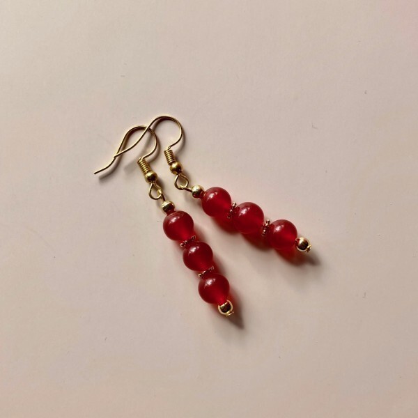 > レッドジェイドジェイド ピアス フックピアス 8mm (ゴールド) イヤリング、樹脂フック変更可 樹脂ピアス シンプル ハンドメイド