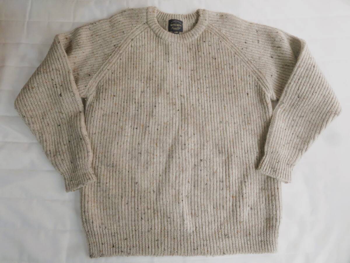 > MITSUMINE ミツミネ ウール100% ネップ加工 クルーネック セーター ラグラン サイズL アースカラー 厚手 毛 送料無料