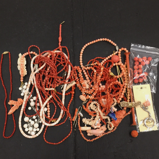 > 1円 留め具 14K 珊瑚 ネックレス 他 ブローチ / 帯留め 等 アクセサリー 総重量約499g まとめ セット 現状品 A20858