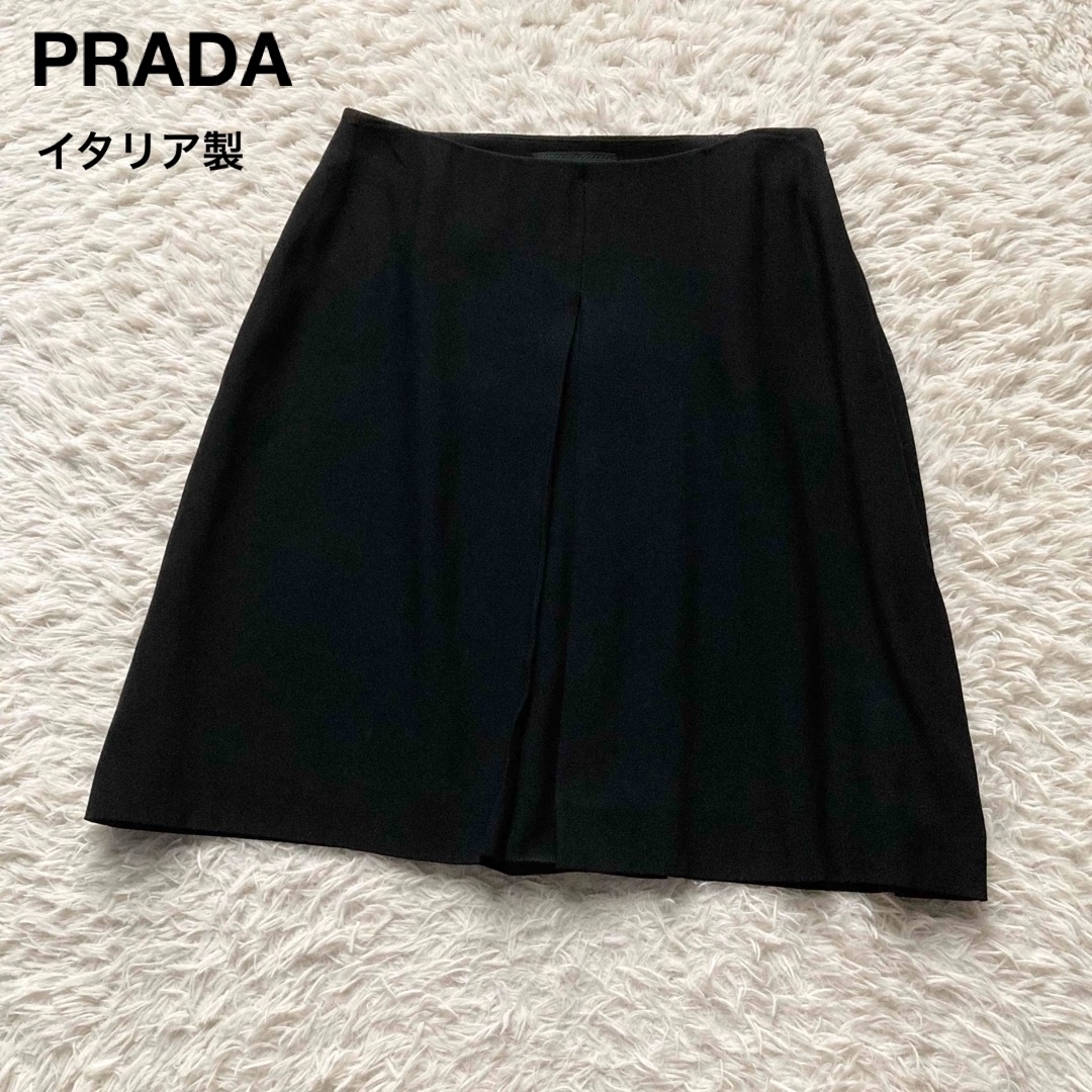 > 【美品】PRADA プラダ Aラインスカート 40サイズ 黒 ブラック イタリア製 高級感◎ フォーマル セレモニー