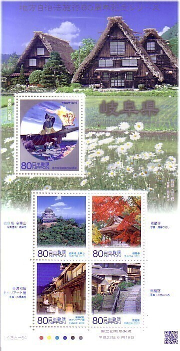 - 「地方自治体法施行60周年記念シリーズ 岐阜県」の記念切手です