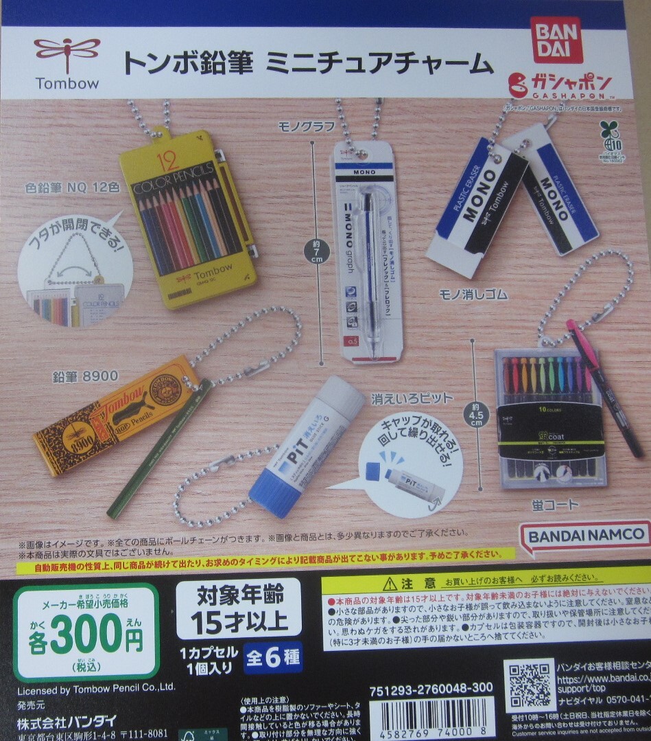 - トンボ鉛筆 ミニチュアチャーム 全6種セット ガシャポン 台紙付セットあり