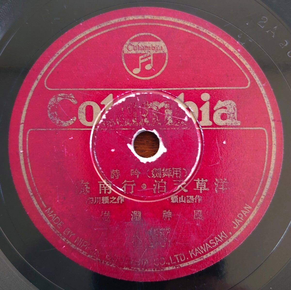 - 【SP盤レコード】Columbia A1657 詩吟(剣舞用)/海南行・泊天草洋/櫻花詞/岩淵神風