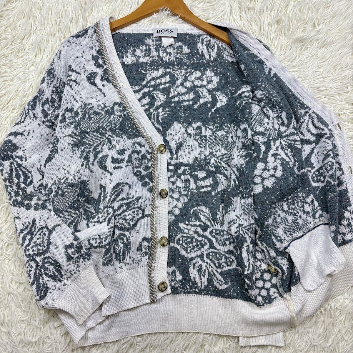 > ◎美品/希少XLサイズ!!!◎HUGO BOSS ヒューゴボス【極上の着心地】カーディガン 羽織り 総柄 ニットジャケット セーター 50 LL 大谷翔平