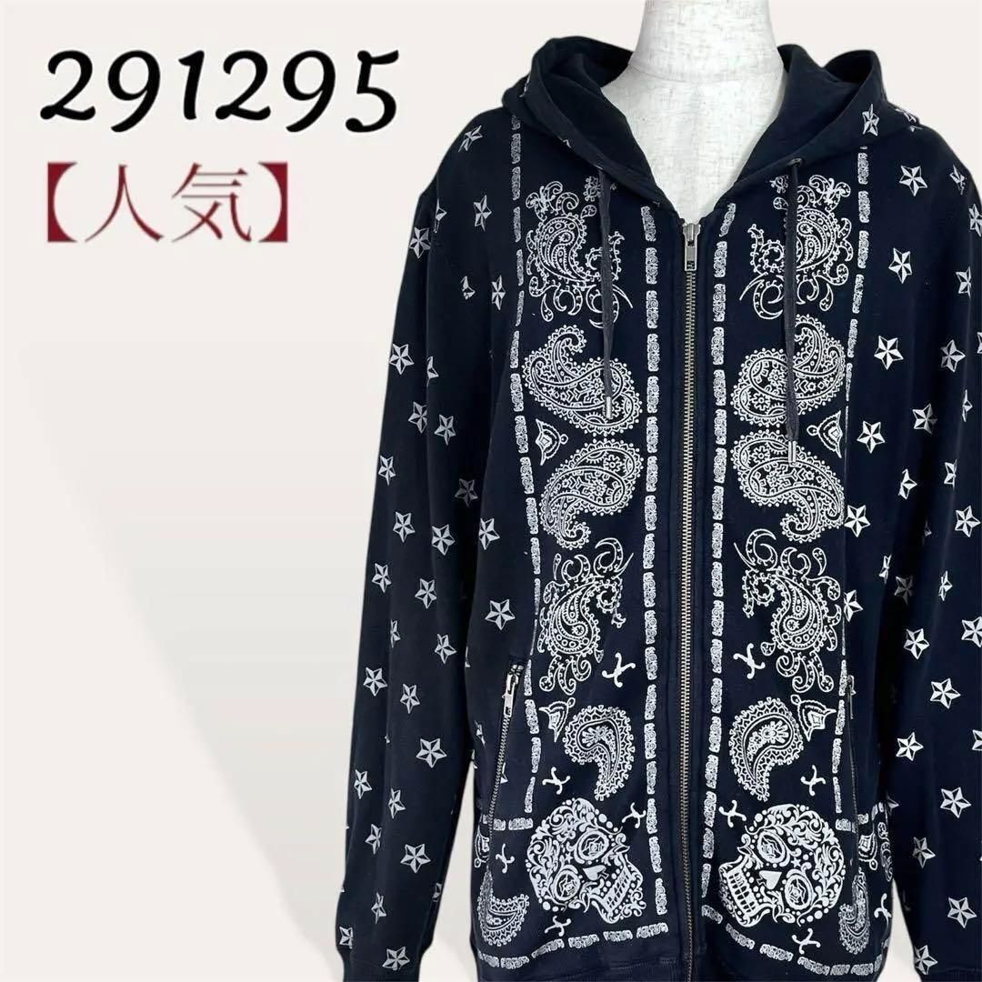 > 人気 291295 ペイズリー ハートスカル ダブルジップパーカー 48・LL ボタニカル ドクロ フーディ フルダブルジップレディース 男女兼用