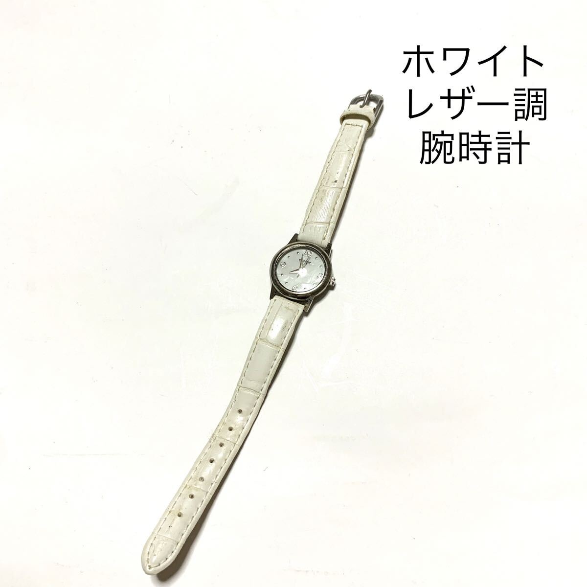 - 腕時計 白 フェイクレザー 合皮 防水ステンレス ホワイト レディース クォーツ