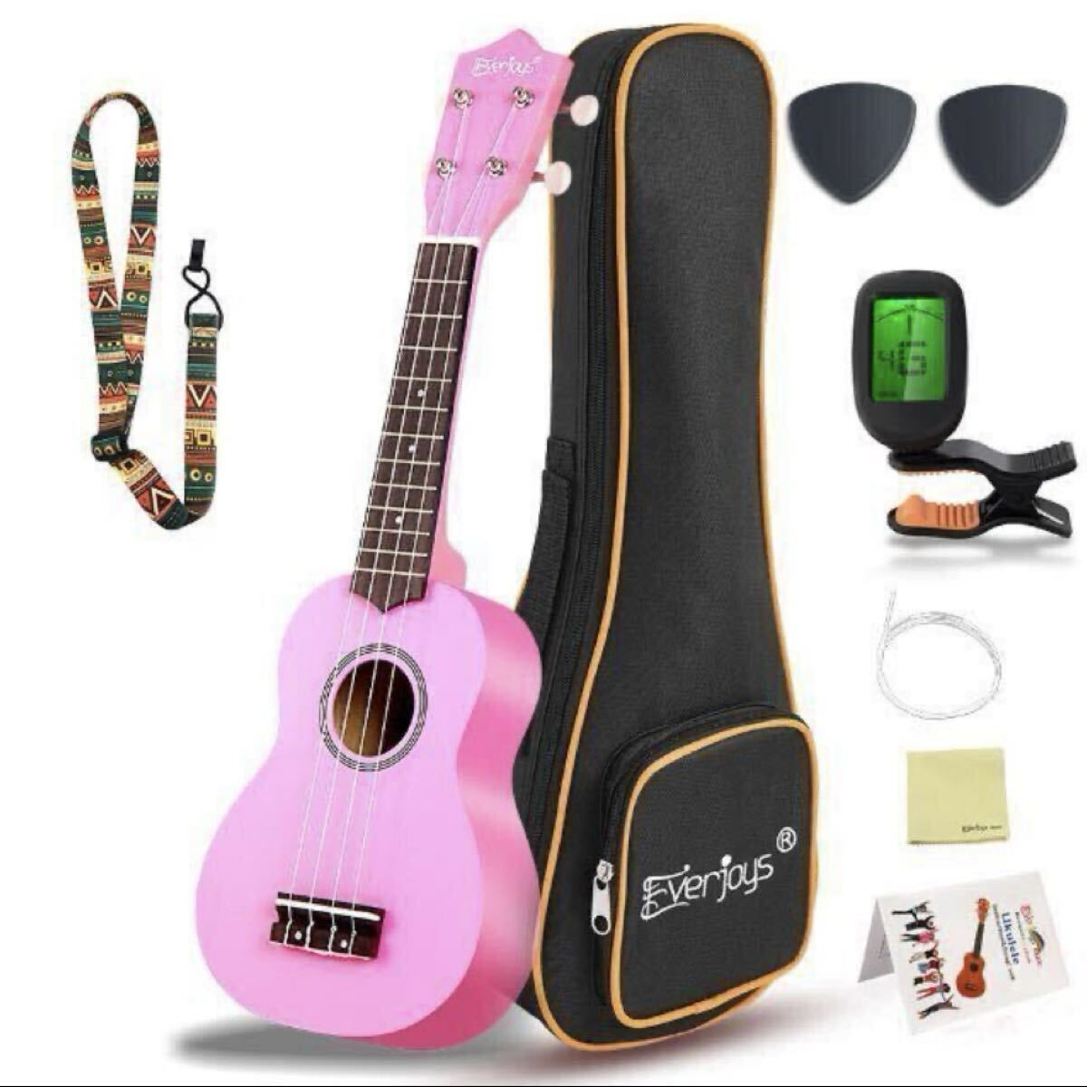 - 気まぐれセール!カラフルウクレレ 上品なマホガニー材 [初心者セット] 21インチ 可愛いピンク ¥2999→¥1999