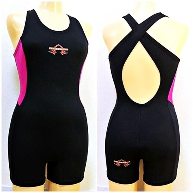 > PE4-A32☆//新品♪AIRTIGHT*ウェットスーツ風厚手生地*バッククロス*黒×紫のバイカラー*スイムウェア*★