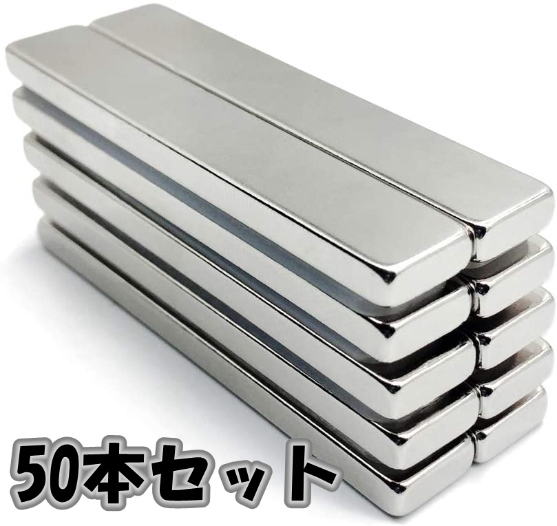 - 【60x10x3mm 50本】超強力バーマグネット 磁石マグネットバー ネオジム磁石 抗錆 冷蔵庫用