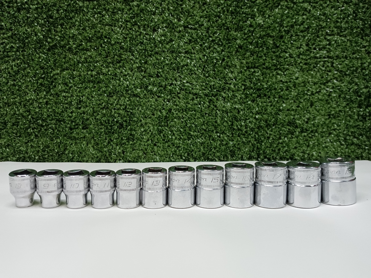 - 中古 snap-on スナップオン 3/8 ショートソケット 12個セット 6角 8mm~19mm FSM8I~FSM19I