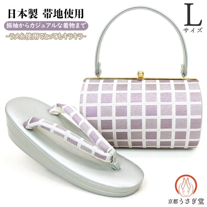 > セール Lサイズ 草履バッグセット 振袖 成人式 zb-046 二枚芯 結婚式 卒業式 訪問着 付け下げ カジュアル フォーマル 銀 シルバー ピンク